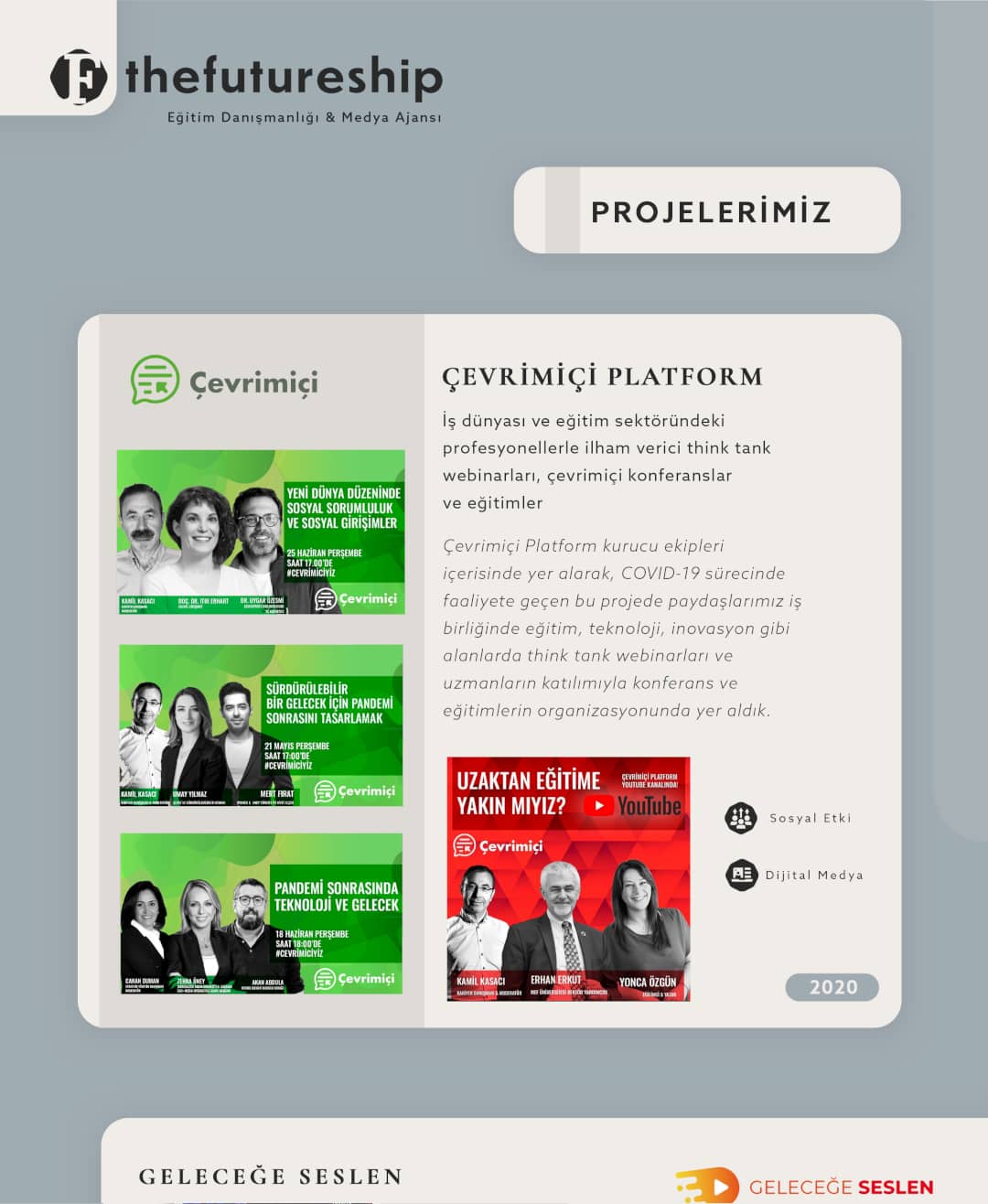Geleceğin becerilerini geliştirmek için medya ve eğitim teknolojileri alanında tüm dünyada etki gösteren ve geçerliliğini koruyan toplumsal etkiyi merkeze alan bir yapı oluşturmayı hedefliyoruz.
